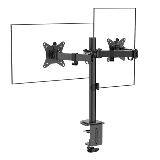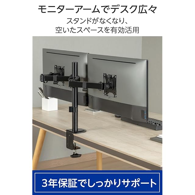 横並び2画面対応、画面の前後移動ができる4軸タイプモニターアーム。17~32インチ対応、耐荷重~9kg