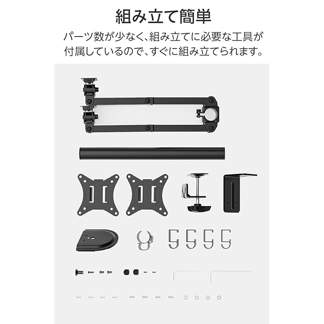 パーツ数が少なく、組み立てに必要な工具が付属しているのですぐに組み立てられます。見た目もスッキリ、ケーブルを収納できるガイド付き。