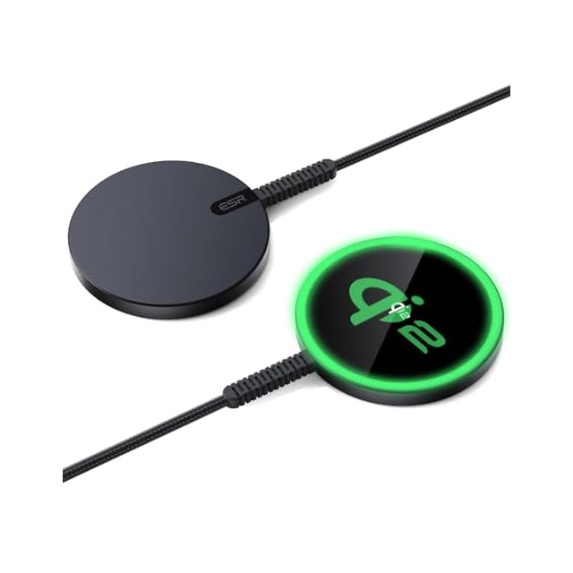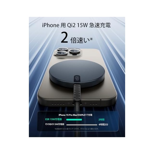 ESR Qi2 ワイヤレス充電器 iPhone用充電パッド iPhone 15/14/13/12シリーズ AirPods Pro対応Magsafe充電器 A/Cケーブル付き強力マグネット充電パッド 2個入りブラック