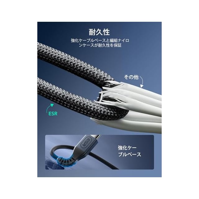 【耐久性】:強化ベースと編組ナイロン製アウターケースを備えた超耐久性ケーブルは、6,000回以上の折り曲げに耐久し、新品同様の外観と機能を維持するようテスト済みです。