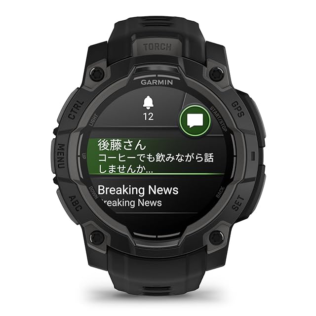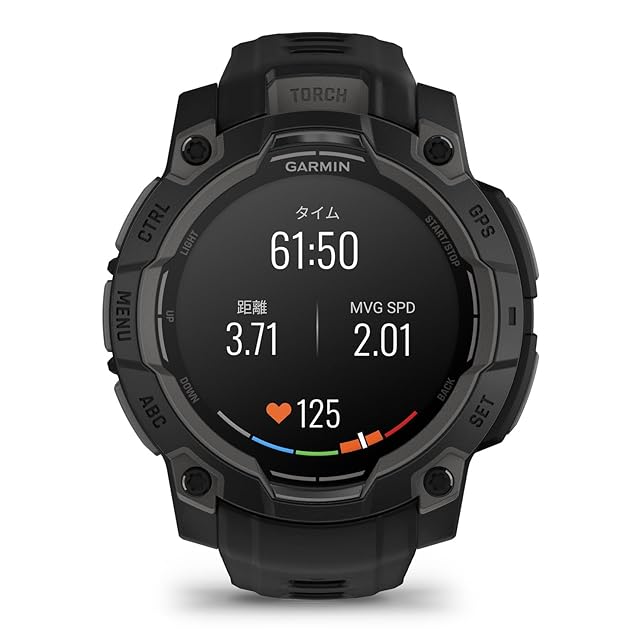 【金属強化】ベゼル一部に金属を使用し、強度を高め、高級感のあるデザイン。【タッチ決済】便利なSuica機能を搭載。【稼働時間】約18日間のロングバッテリー【ディスプレイ】シリーズ初のAMOLEDディスプレイ。1.2インチの大画面で、Instinctらしいサブ液晶をイメージしたデザインのウォッチフェイスも搭載。