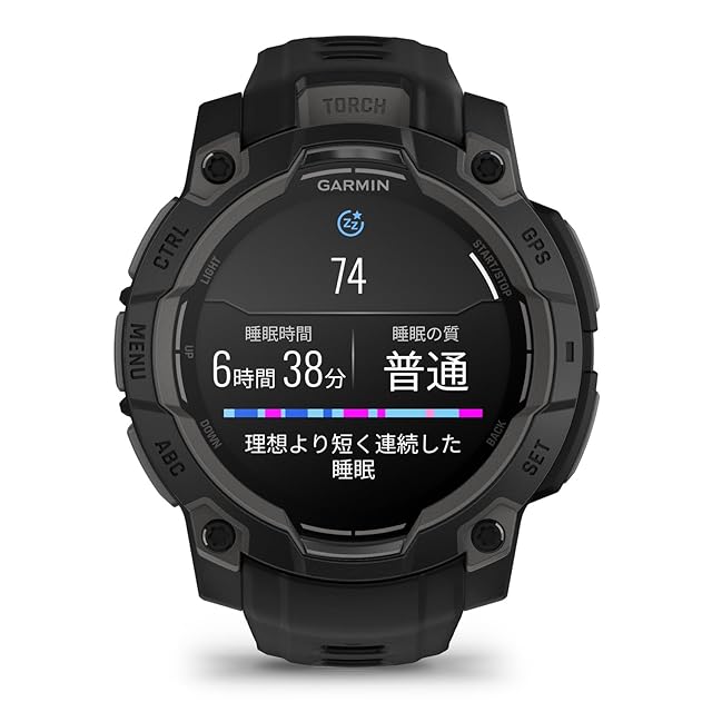 【LEDフラッシュライト】赤と白のLEDフラッシュライトを搭載し、暗い場所でも安心して行動できます。【健康モニタリング】心拍数、睡眠モニタリング、ストレスレベルなど、日常生活やアクティビティ中の健康をモニタリングできます。