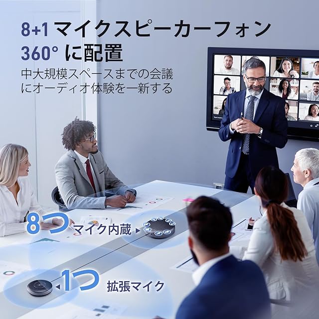 【独立した拡張マイクを搭載】EMEET Luna Plus Kitスピーカーフォンは初代から8つのマイクの上に拡張マイクを搭載し、収音範囲を拡大し、360度どの方向からでも音を拾うことができます。カバー範囲が広いため、14人の参加者を収容でき、すべての参加者の声をはっきりと聞き取ることができます。