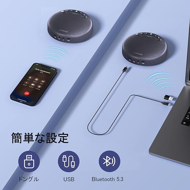 【連結機能&大規模な会議も対応】EMEET Luna Plus Kit会議用スピーカーは、連結機能により、さまざまなシーンに対応したカバー範囲の拡張が可能です。EMEETの専用連結ケーブルを使って会議用スピーカーフォンを接続し、25人まで参加可能な会議をサポートできます。会議用スピーカーの有線接続技術は、無線接続とは異なり、安定した接続をし、干渉のない通話を実現します。