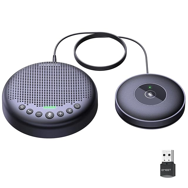 EMEET Luna Plus Kit スピーカーフォン 8マイク+1拡張マイク 会議用 マイクスピーカー 360°音声ピックアップ エコー・ノイズのキャンセリング 14人まで対応 web会議マイク USB C/Bluetooth5.3/Dongle対応 連結機能 双方向通話 集音マイク オンライン会議・テレワーク・在宅勤務 Skype/Zoom/Teams/通話アプリ対応 | TREND DESIGN 家電専門店