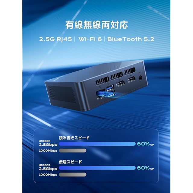 【無線&有線接続両対応】 UN100PミニPCはインテルAX101(Wi-Fi6&Blue tooth5.2)を採用します。2500Mbps LANポートが付き、有線無線両対応です。ソフトウェアルーター(OpenWRT / DD-WRT / Tomatoなど)、ファイアウォール、NAT、ネットワーク分離など、より多くのネットワークを使用できます。