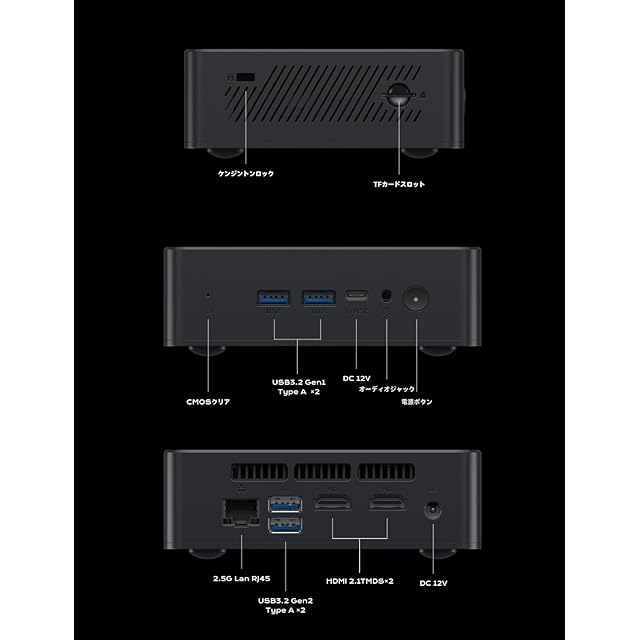 商品名:MINISFORUM UN100PミニPC インテルN100 16GB 512GB SSD コンパクトpc Windows 11 Pro MiNipc インテル UHD Graphics Wi-Fi6 BT5.2 2500Mbps LAN TFカードスロット/HDDスロット付き HDMI×2 /USB-C 4K@60Hz 3画面出力 小型パソコン