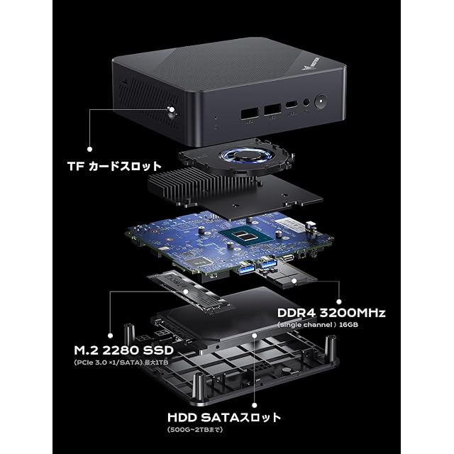 【大容量】DDR4 3200MHZ 16GB メモリ(SO-DIMM)+ M.2 512GB SSDストレージ(最大1TBまで換装可)を搭載し、1x SATA HDD(SATA 3.0 6.0Gb/s)スロットも付き、容量の不足を心配せずに、映画/デジカメ写真の保存など、ストレスなく気軽に対応します。