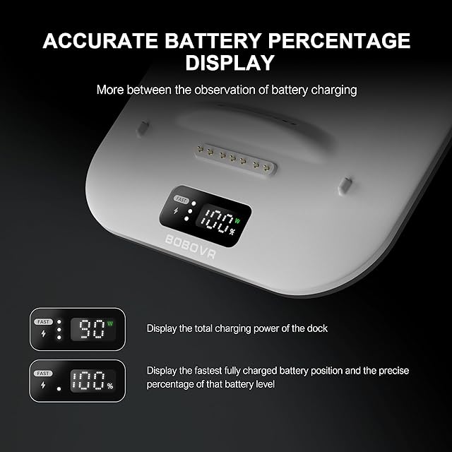 商品名:BOBOVR BD3充電ドック、3*B100、30W電力、わずか1時間で0-80%の急速充電を提供