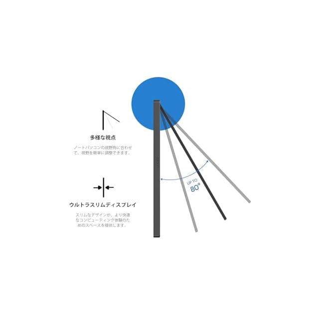 【自立スタンド付き・3年品質】ケープルの接続を妨げない自立スタンドが付いており、 0°-80°の範囲で自由に角度を調整できます。固定力も十分で、「大きな角度だと倒れるかも? 」という心配もありません。底部にはり止めゴムが付い、滑る心配もなく、安定性を最大限に確保できます。達体はアルミ合金製で、耐久性と重量のバランスが良好です。 「PES済」の弊社モバイルモニターは36ヶ月の期間が付いています。万が一不具合や故障が発生した場合は、ご連絡いただければ速やかに返品·交換· 返金などの対応をいたします。 (人為的な損壊は対象外です。)