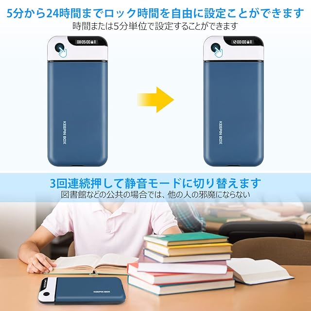 ♪ 【静音モード&持ち運びやすい】-ロックボタンを3回連続押して静音モードに切り替えできます。図書館などの公共の場合では、他の人の邪魔にならない。タイムロックボックス内寸は166×85.5×14 mmで、ほとんどのスマートの機種を適用します。外寸は205×95×20 mmで、コンパクトで持ち運びやすく、カバンに入れておけばいつでも使うことができます