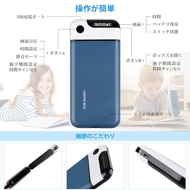 商品名:タイムロッキングコンテナ スマホ ロックボックス タイム ロック ボックス スマホ依存症 禁欲ボックス スマホ ロック タイム ロッキング コンテナ USB充電式 長い連続使用時間 時間を自由に設定 携帯便利 禁煙 スマホやゲームのやりすぎに最適 ブルー