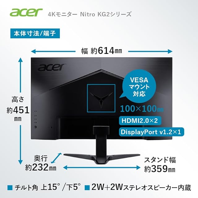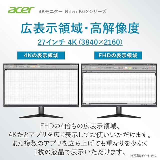 商品名:Acer 4K モニター KG2 27インチ IPS 非光沢 sRGB 99% HDR 10 HDMI 2.0 DisplayPort1.2 スピーカー内蔵 ヘッドホン端子 VESAマウント対応 KG272KLbmiipx