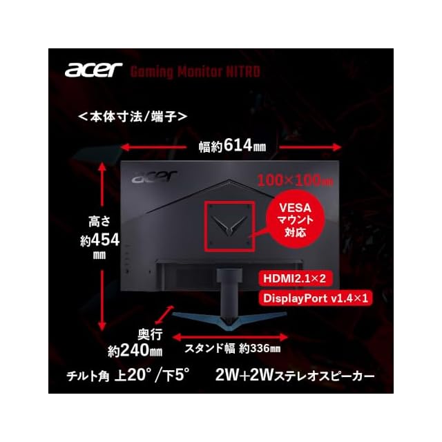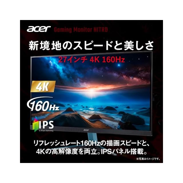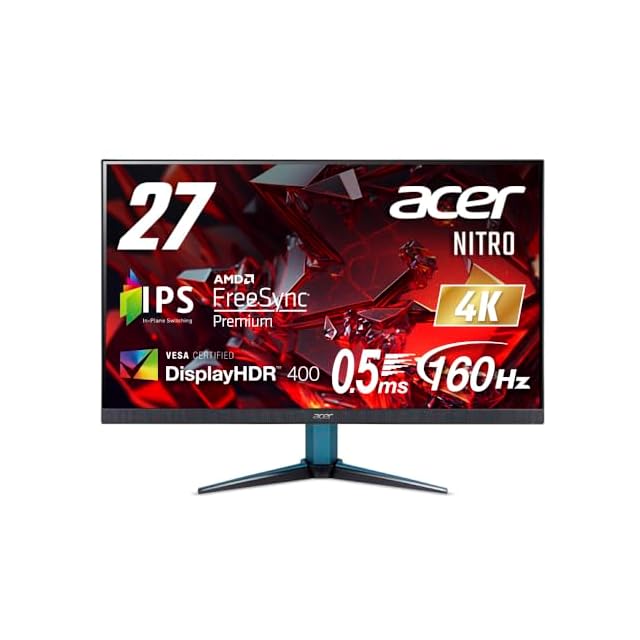 商品名:Acer ゲーミングモニター Nitro 27インチ IPS 非光沢 4K UHD 160Hz 0.5ms HDMI 2.1 DisplayPort スピーカー ヘッドホン端子 PC PS5 Xbox X|S VESAマウント対応 VG272KV3bmiipx