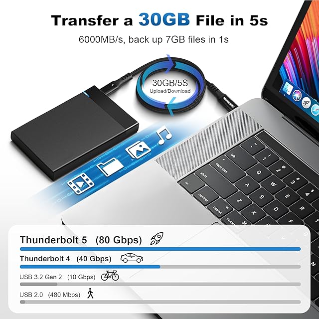 HYairspy Thunderbolt 5 USB-Cケーブル 80Gbps 240W 急速充電 | 3.3フィート/6.6フィート | 5色 (ブラック/ホワイト/オレンジ/ピンク/マルチカラー) | インテル認証 デュアル8K@144Hz、USB4、Mac、iPhone 16、ゲーム、SSD対応 ⚡ 【240W超高速充電 – PD3.1& QC4.0 】インテリジェントな温度制御により、iPhone 16/15シリーズ、MacBook Pro、Samsung Galaxy S25/S24、高出力ノートパソコンを安全に充電できます。 過熱のリスクを防ぎながら、最大240Wの高速充電(実際の速度はデバイスによって異なります)を提供します。 【80Gbps Thunderbolt 5 データ転送 – インテル認定】クリエイターやゲーマー向けの#1 Thunderbolt 5ケーブル。 4Kムービーを数秒で転送し、デュアル8K@120Hzモニター、eGPUドック、外付けSSDドライブ、マルチスクリーンワークステーションに電力を供給します。 USB4/Thunderbolt 4/3の完全な下位互換性。 ✅【スタイリッシュな5色&2つの長さ – デスクトップまたは外出先でも】3.3フィート(デスクトップ/ポータブル)または6.6フィート(ワークスペース/VRゲーム)のセットアップにマッチします。 洗練されたブラック、ミニマリストホワイト、鮮やかなオレンジ、ソフトピンク、トレンディなマルチカラー編組ケーブルからお選びください。 【ユニバーサルUSB-C対応】Mac Studio/Mini M2/M3、iPad Pro 2024、Windows PC、Google Pixel 9/8、LG UltraFineディスプレイ、ASUS/HP/Dell Thunderboltドック、USB-Cパワーバンクと完璧に動作します。 [工業グレードの耐久性 - 30,000回以上の曲げ寿命] 強化された二重編組ナイロンと錫メッキ銅コアは、標準的なケーブルよりも200%高い張力に耐えます。 30,000回以上の曲げテストに耐えます - 旅行、ゲームリグ、毎日の過酷な使用に最適です。 ✅ HYairspy Thunderbolt 5ケーブルを選ぶ理由。 Intel Thunderbolt 5認定 (本物の80Gbpsの速度を) 240W充電 + 8Kデュアルディスプレイ対応 5色のオプションでテクノロジーエコシステムをパーソナライズ 3.3フィート&6.6フィート – あらゆるワークスペースに最適化 – 今すぐセットアップをアップグレード – 1本のケーブルでパワー、スピード、スタイルを!