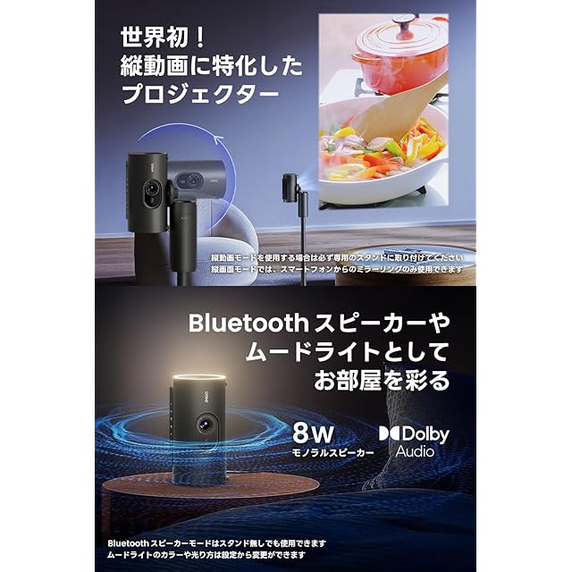 【Google社と共同開発縦モード投影機能あり】Google社と共同開発された縦投影モード機能搭載。横投影だと小さかったTikTOKやYouTubeショートをスマホからミラーリングして、大画面でお楽しみいただけます。縦投影モードは専用のバッテリーや三脚が必要です。