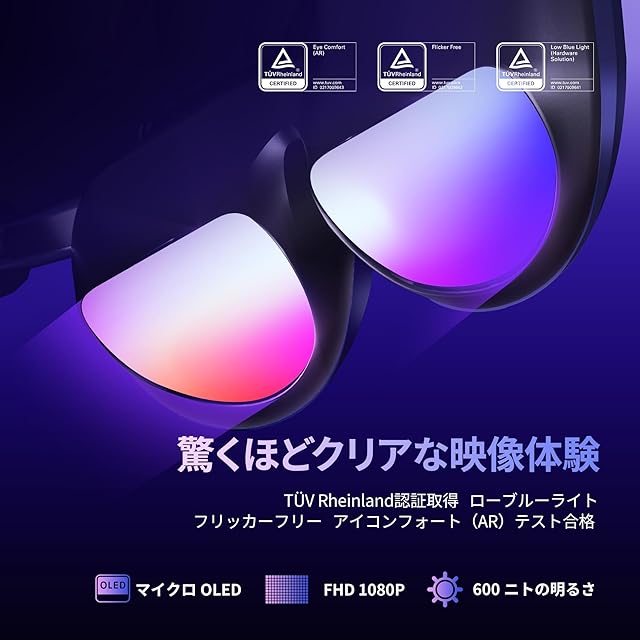 【驚異の120Hz+1080P FHD、極上の映像美】120Hzの高リフレッシュレートと、高規格のMicro-OLEDパネルによる1080PのフルHD解像度。滑らかで鮮明、まるで現実が動き出すような映像表現。