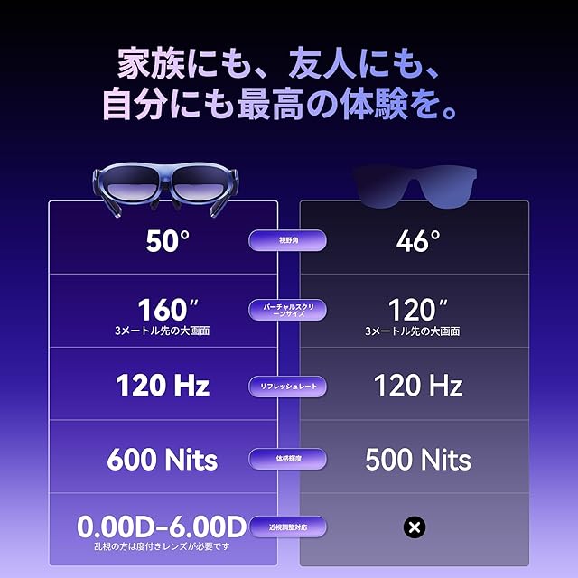 【近視ユーザーにも快適な視界、補正レンズ不要】0.00D〜-6.00Dまでの視力補正機能を内蔵。近視の方も、補正レンズなしでクリアな視界を実現します。