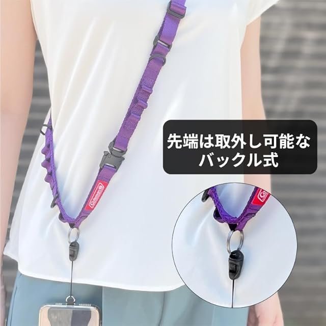 商品名:エツミ & Coleman (コールマン) コラボレーション モデル ハンギング ストラップ ネック タイプ パープル アウトドア アジャスター リング ループ VCO-8761