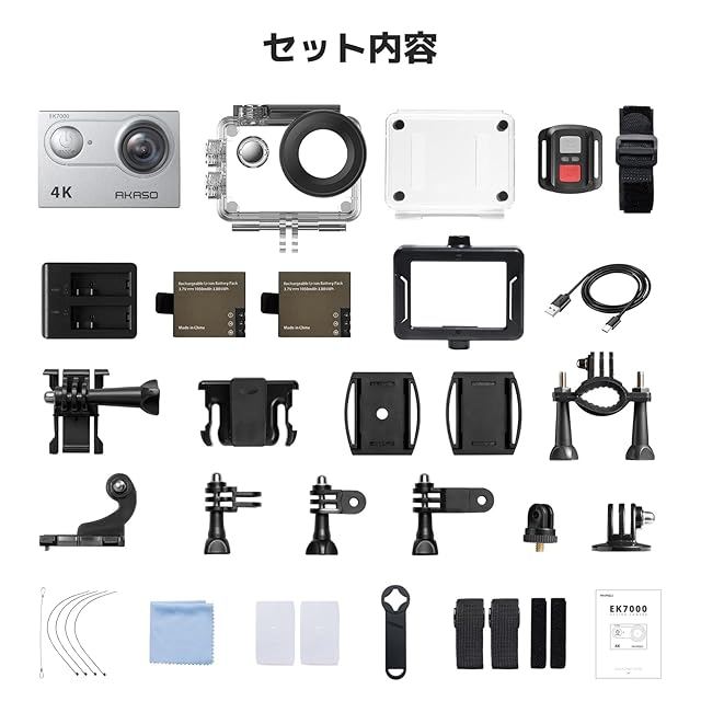 商品名:AKASO アクションカメラ EK7000 4K30FPS 20MP 水中カメラ WiFi搭載 外部マイク対応 30M防水 HDMI出力 170度広角レンズ リモコン付き 1050mAhバッテリー2個付き アクションカム ウェアラブルカメラ 豊富なアクセサリー バイク/自転車に取り付け可能 シルバー