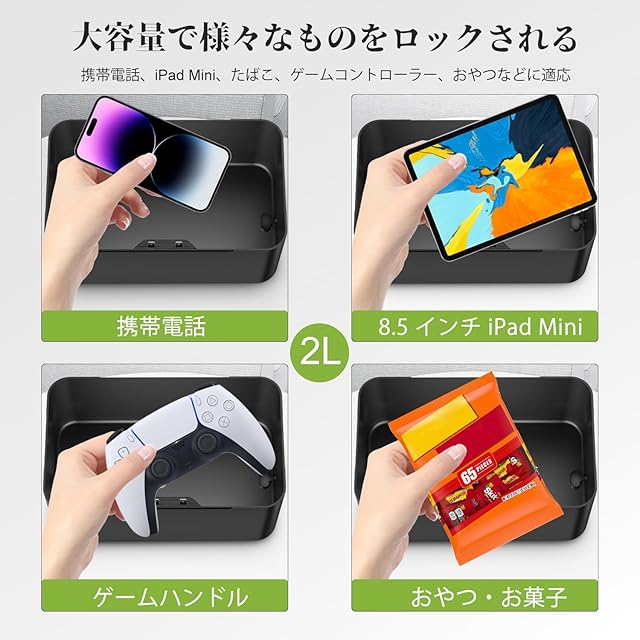 iDiskk タイムロッキングコンテナ スマホロックボックス スマホ依存症&ゲームに夢中対策 脱スマホ依存 欲望制御ケース 2L大容量 デジタルデトックス USB電池式 タイマー 箱 静音モ一ド 半年の連続使用時間 最大365日のロック時間 時間を自由に設定 お金 たばこ止める スマホやゲームのやりすぎに最適