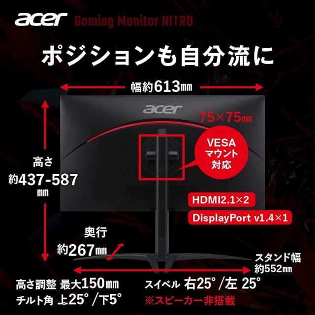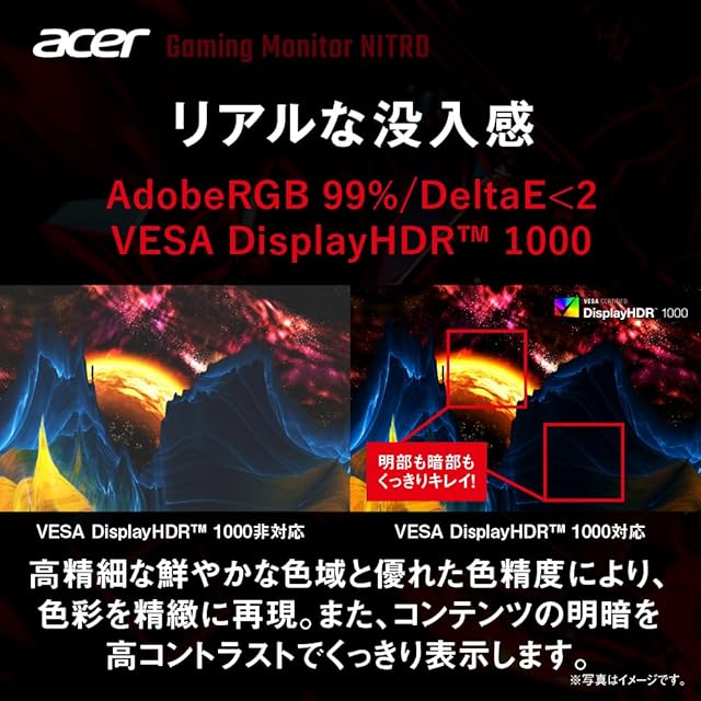 商品名:Acer ゲーミングモニター Nitro 27インチ MiniLED WQHD VA 非光沢 170Hz 2ms DeltaE<2 HDMI2.0 DisplayPort1.2 高さ調整 ピボット機能 HDR1000 ヘッドホン端子 PC PS5 Xbox X|S VESAマウント対応 XV275UP3biiprx