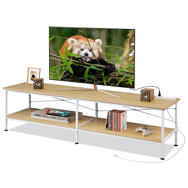鋼木コンビネーション: スチールと木素材の融合が、テレビボードの安定性を高める一方で、細部にわたる足部アジャスターがテレビ台全体の揺れを抑え、耐久性と安定性を兼ね備えた製品を提供します。天板の耐荷重は最大45kg、棚板は20kgです。