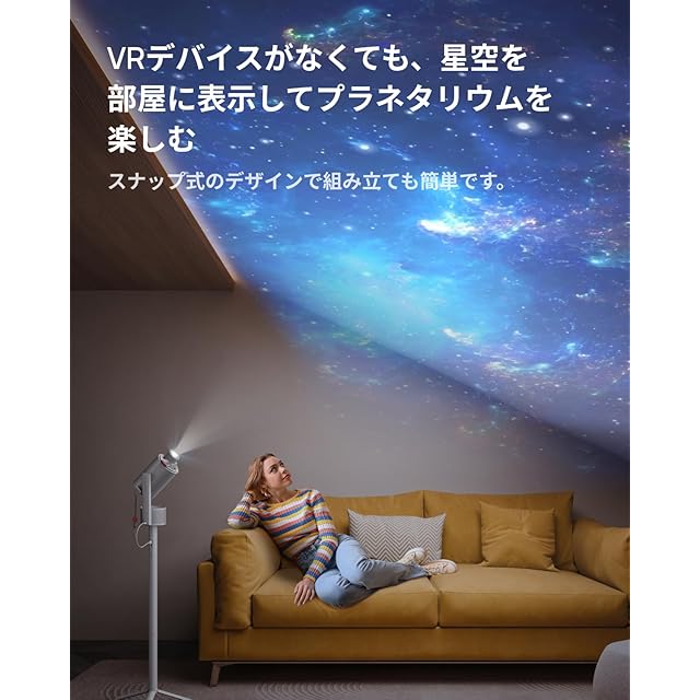 VRデバイスがなくても、星空を部屋に表示してプラネタリウムを楽しむことができます。スナップ式のデザインで組み立ても簡単です。