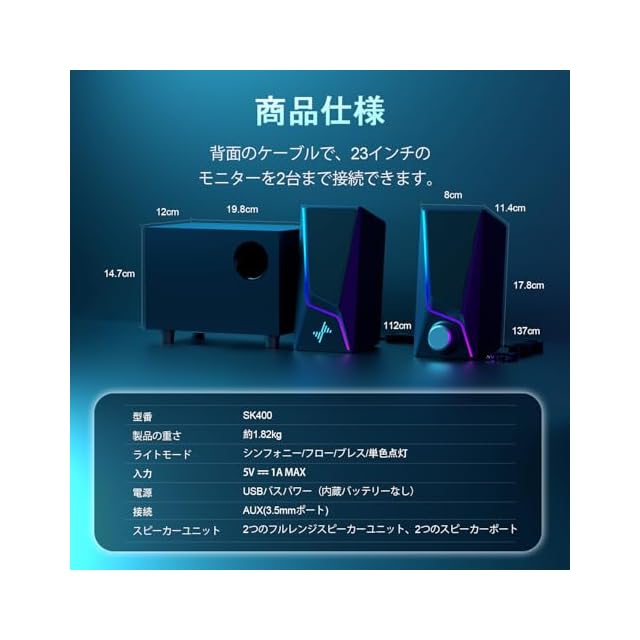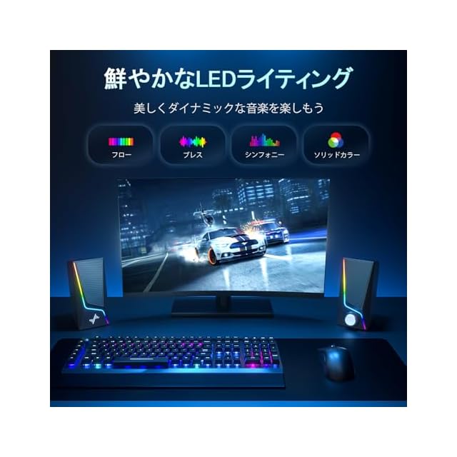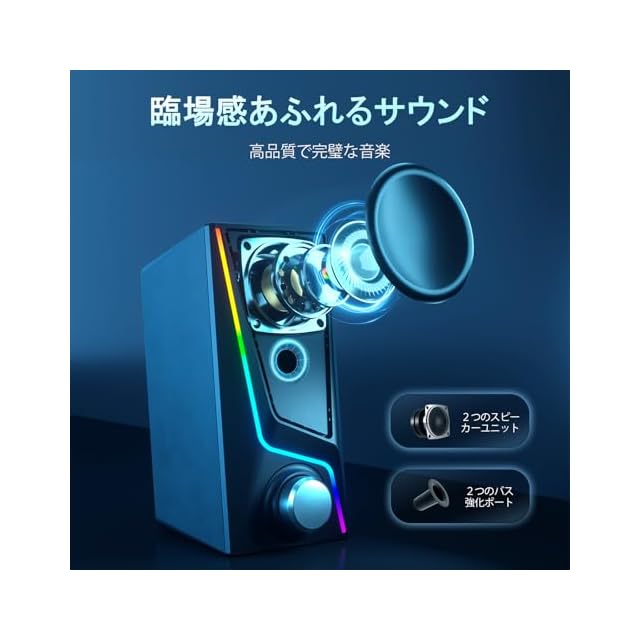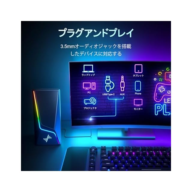 商品名:Nylavee PCスピーカー サブウーファー付き 2.1ch 重低音 USB/USB-C給電 3.5mm接続 ライト付き パソコン用 デスクトップ モニター ノートパソコン タブレット対応