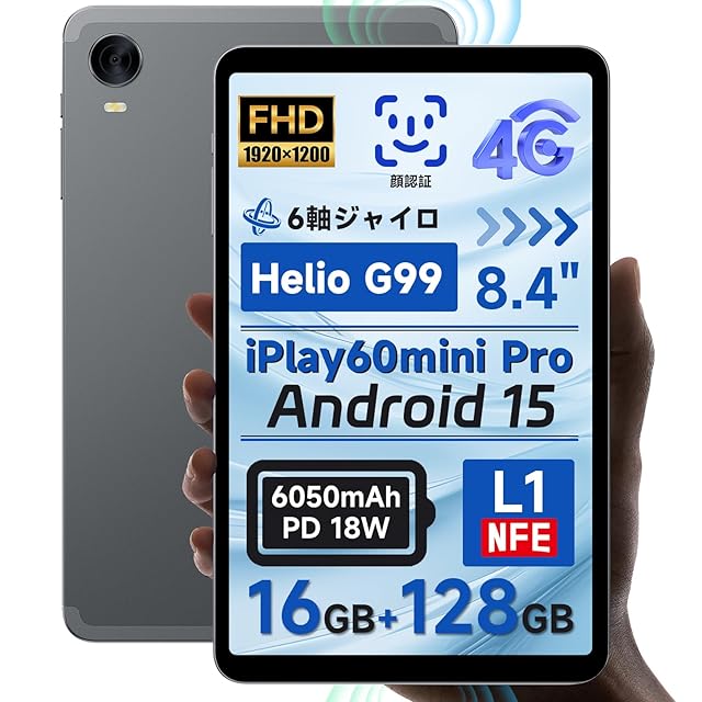 ALLDOCUBE iPlay60mini Pro 8.4インチタブレット 顔認識 4GLTE デュアルスピーカー WidevineL1 Android15タブレット 6軸ジャイロ 1920×1200FHDディスプレイ 16GB(8+8仮想) +128GB+512GB拡張 6050mAh Helio G99 PD18W急速充電 13MP/5MP アンドロイドタブレット | TREND DESIGN 家電専門店