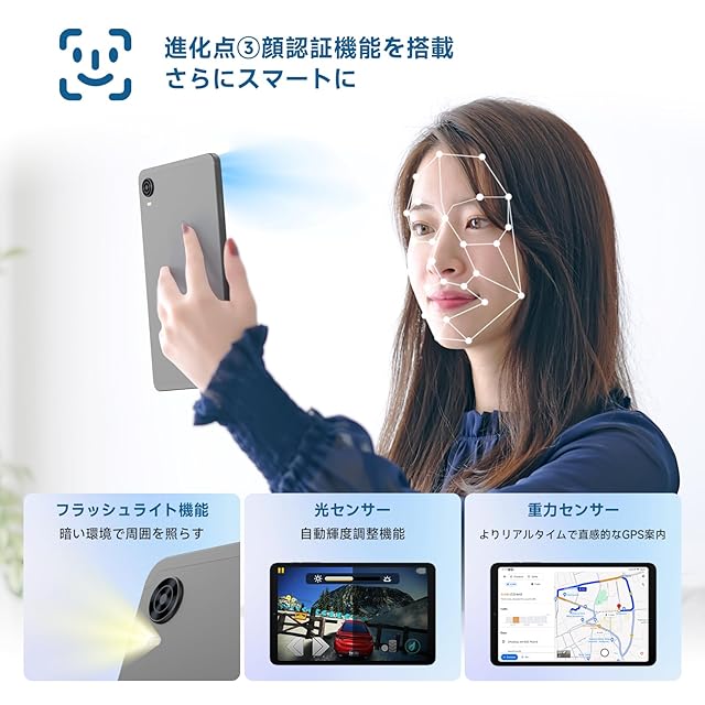 【ご注意:6/7からの販売分はAndroid15です。ALLDOCUBE OS3.0ではございません。ご不便おかけし申し訳ございません。】【顔認証+フラッシュライト】✨ 高速顔認証機能をサポートし、パスワードやPINコードを入力することなく簡単にデバイスにアクセスできるだけでなく、フロント5MPとリア13MPのカメラを搭載し、いつでも瞬間を記録することができます。 顔認証技術はプライバシーを保護し、デバイスのロックを解除する便利な方法を提供するため、忙しい生活の中で面倒な手順を省くことができます。 高解像度のフロントカメラとリアカメラで、鮮明で詳細な写真やビデオを撮影し、お客様の人生のあらゆる美しい瞬間を記録できます。 ビデオ通話でも、自撮りでも、風景撮影でも、この製品なら簡単に対応でき、より多くの楽しさと便利さをもたらします。 お客様の生活をより便利で素晴らしいものにするために、本製品をお選びください!