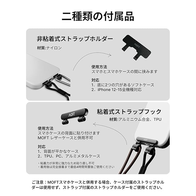 【初の試み・ストラップ新提案】MOFTスマホストラップは前作から全面的にレベルアップ!おしゃれな外観に加え軽快な構造、お客様のご要望により使いやすいストラップに進化した。更に、このストラップは耐久性のあるナイロン製で、頑丈でしっかりとスマホをサポートし、汚れても丸ごと水洗い可能。