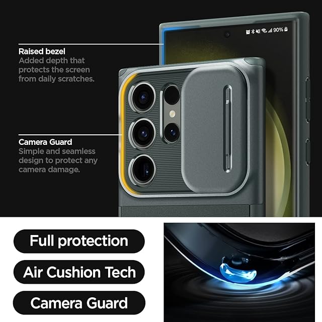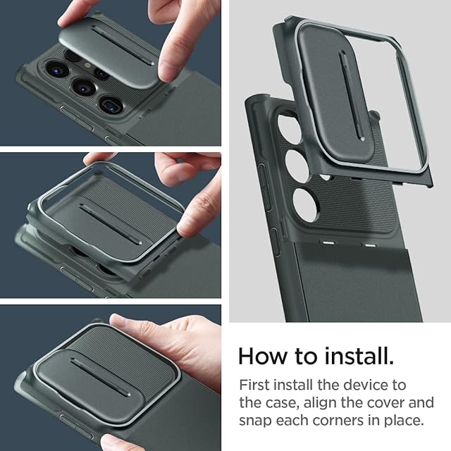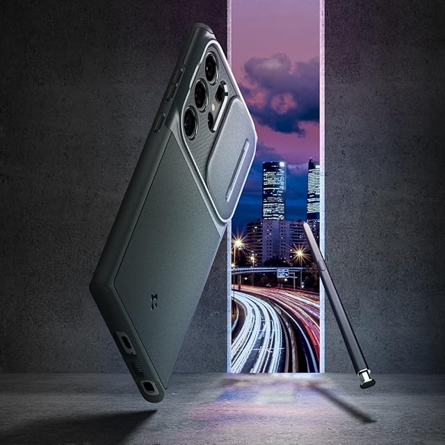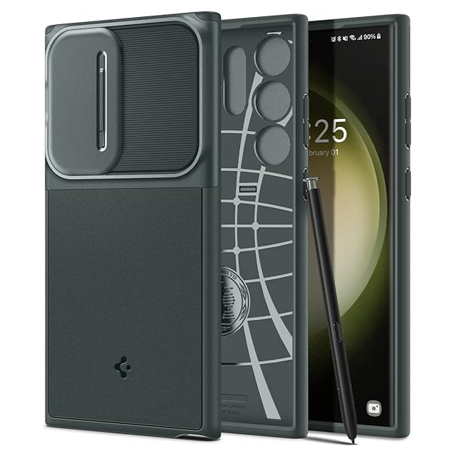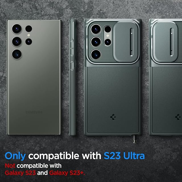 Spigen Galaxy S23 Ultra ケース カメラレンズ保護 スライド式 軽量 2重構造 [TPU+PC] 耐衝撃 レンズ保護 滑り止め 超耐磨 オプティック・アーマー ACS06081 (アビス・グリーン)