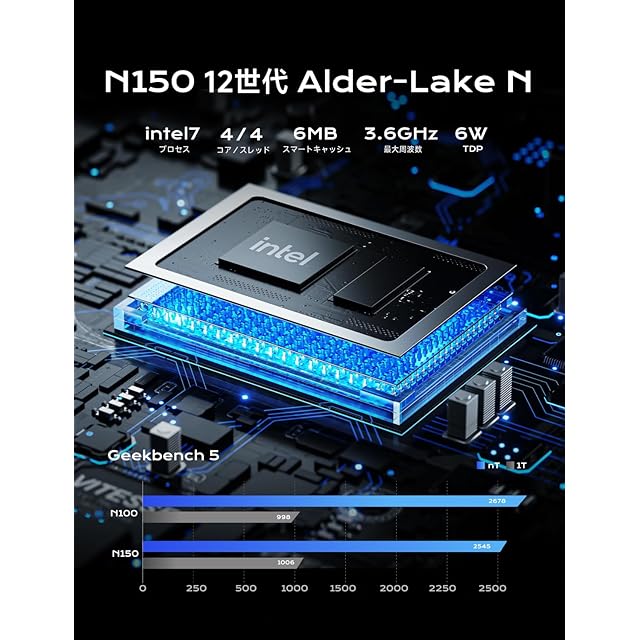 【優れたパフォーマンス】MINISFORUM Venus Series UN150P コンパクトpcはWindows 11 Proがプリインストールされます。CPUには省エネのGracemontアーキテクチャに基づいているインテルのAlder Lake-NプロセッサーN150を搭載します。製造プロセスが更新された10nmプロセス(インテル7)が使用されています。在宅勤務、オンライン教育やテレワークなど幅広く活躍しています。