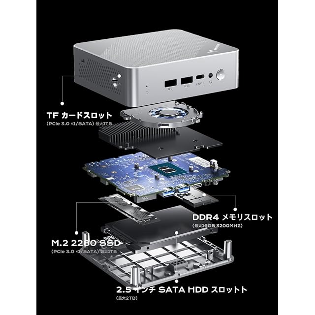 【大容量】DDR4 3200MHZ 16GB メモリ(SO-DIMM)+ M.2 256GB SSDストレージ(最大1TBまで換装可)を搭載し、1x SATA HDD(SATA 3.0 6.0Gb/s)スロットも付き、容量の不足を心配せずに、映画/デジカメ写真の保存など、ストレスなく気軽に対応します。