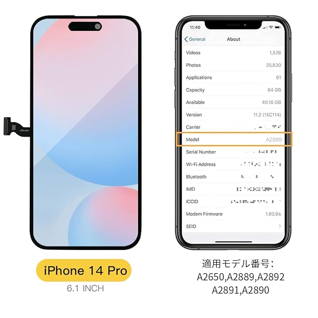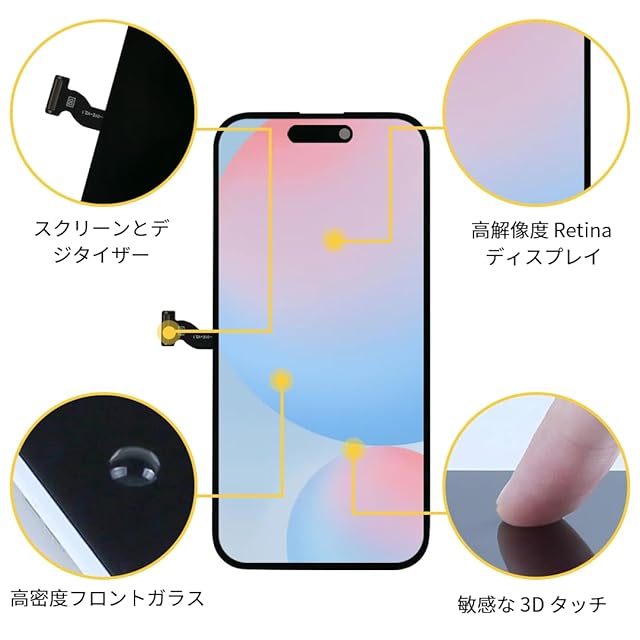 【対応機種】この液晶フロントパネルはiPhone 14 Proとのみ互換性があります。適用モデル番号:A2650, A2889, A2890, A2891, A2892。ご購入前にiPhoneのモデルをご確認ください。
