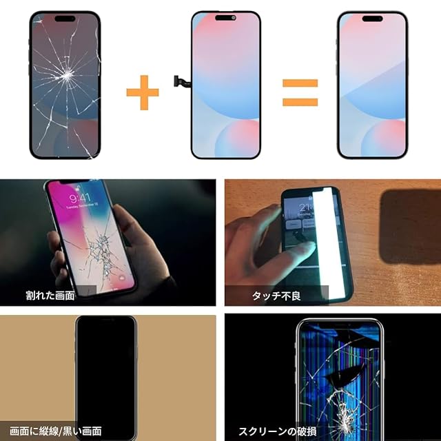 【注意事項】この製品には、フロントカメラ、イヤピーススピーカー、近接センサーは含まれていません。これらの部品は元のスクリーンから交換してください。