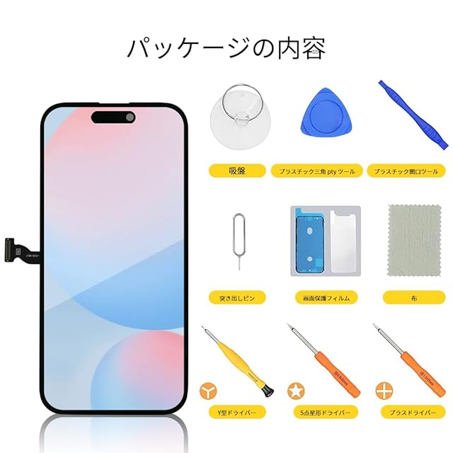 商品名:bokman iPhone 14 pro 液晶パネル FHD画面修理 交換 修理キット+保護フィルム+防水シール付き