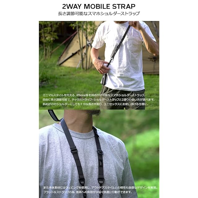 【LENGTH ADJUSTMENT】・・・長さ調整パーツでネックストラップタイプ、ショルダーストラップタイプの2パターンでの使用が可能。ウェビングが折り返し部分で浮いてしまわないよう、サルカンも付いています。