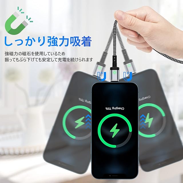 マグネット 充電ケーブル SUNTAIHO USBケーブル【0.5M 1.2M 1.2M 2M 3M】QC3.0/3A急速充電 USB2.0高速データ転送 磁石 磁気 防塵 着脱式 マイクロUSB Type-C コネクタ タイプc Micro USB Cable LEDインジケーター付き 磁気端子収納ケース付き - SYCX001 (5本セット&9個マグネット端子) | TREND DESIGN 家電専門店