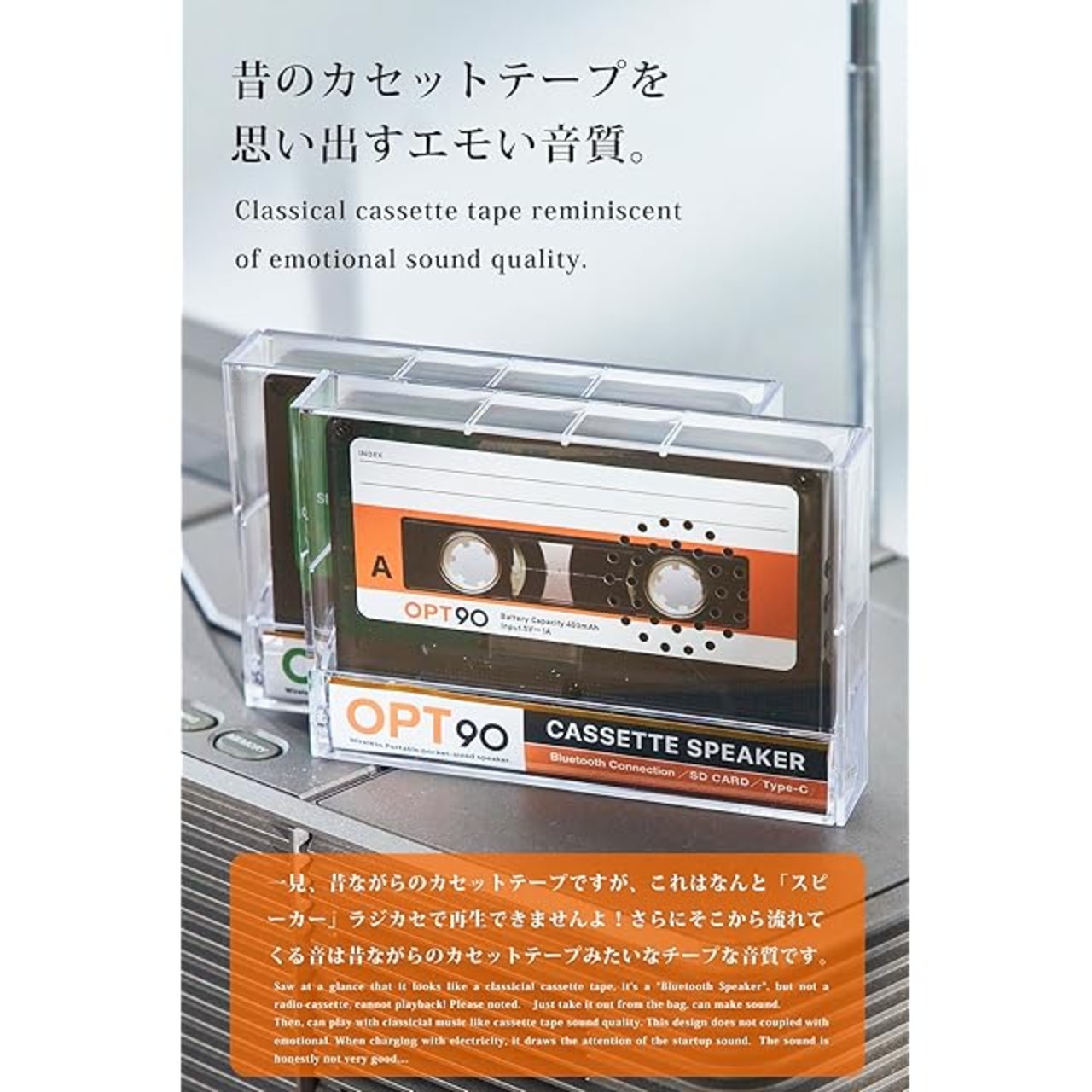 商品名:opt! Cassette Speaker オプト90 カセット スピーカー カセットテープ型 ポータブルスピーカー Bluetooth 5.3 microSDカード対応 TELEC認証取得済 レトロスピーカー ラジカセ ミックステープ (オレンジ)