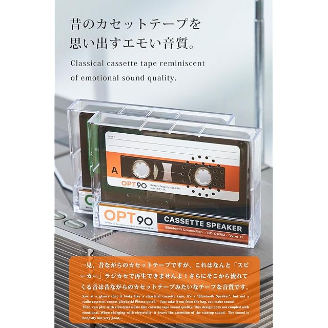 opt! Cassette Speaker オプト90 カセット スピーカー カセットテープ型 ポータブルスピーカー Bluetooth 5.3 microSDカード対応 TELEC認証取得済 レトロスピーカー ラジカセ ミックステープ (オレンジ)