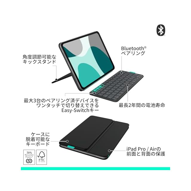 2025年3月発表 / Apple 最新 iPad Air 11インチ M3 M2 & iPad Pro 11インチ M4 対応 / iPad用キーボード付きケース Flip Folio