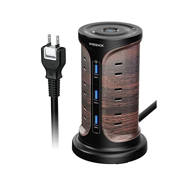 NVEESHOX 電源タップ タワー型 usbコンセント 延長コード 2m 12個AC口 3個USBポート 雷ガード 固定パーツ付 3層 たこ足配線 テーブルタップ マルチタップ たこあしコンセント 壁掛け 安全保護機能 自宅用 会社用 1年間品質 木目調 | TREND DESIGN 家電専門店