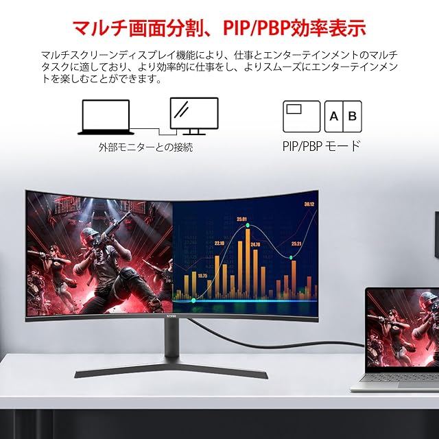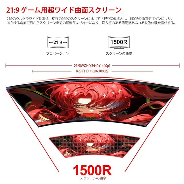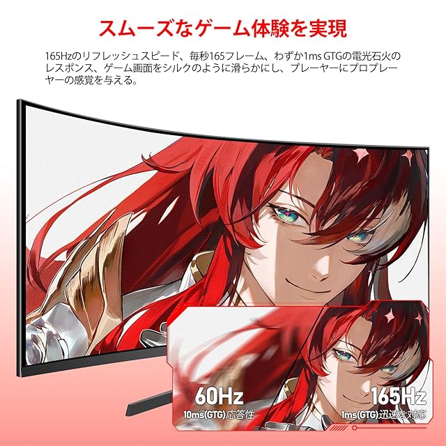 商品名:AESNO 34インチ ゲーミング モニター 湾曲 UWQHD 165Hz 21:9 ウルトラワイド パソコン モニター 1500R 3440X1440 PCディスプレイ HDR Freesync 1Ms(GtG) PBP/PIP/ブルーライト軽減/VA 非光沢/傾斜調整/広い視野角/VESA壁掛け対応/高さ回転調整 三年で安心