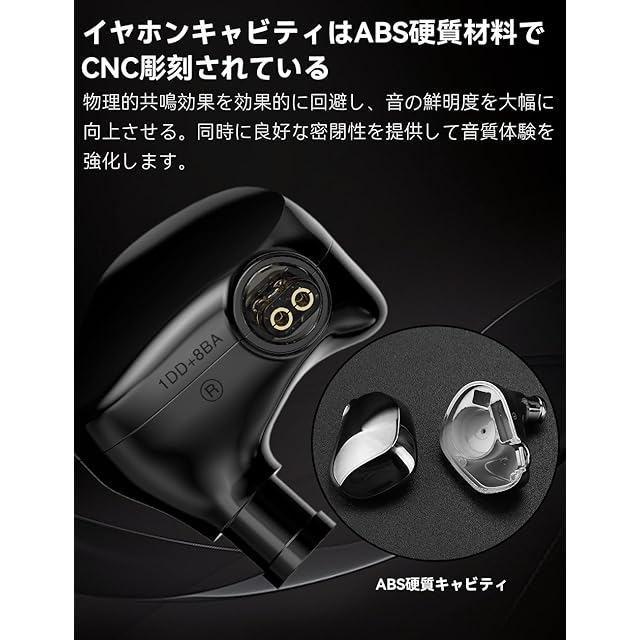 商品名:TRN VXpro+ イヤーモニター ハイレゾ イヤホン 8BA+1DD ハイブリッド型 モニターイヤホン 高遮音性 IEM イヤモニ 有線 3.5mmジャック QDC脱着式ケーブル (ブラック)