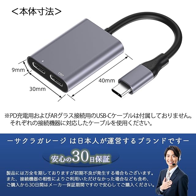 商品名:サクラガレージ ARグラス USB-Cハブ XREAL スマホ Steam Deck Switch対応 Xreal ONEなどのARグラスで スマホやSwitchを 充電しながら使える USB-Cハブ 【4K@60Hz +PD100W】 (グレー)