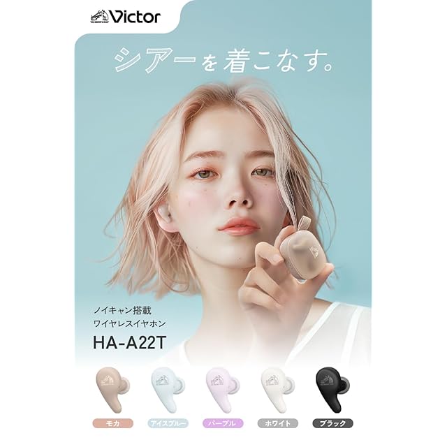 JVCケンウッド Victor HA-A22T-V ワイヤレスイヤホン Bluetooth Ver.5.4 合計26時間再生 ノイズキャンセリング マイク付き 小型 軽量 防滴 シアーデザイン パープル | TREND DESIGN 家電専門店