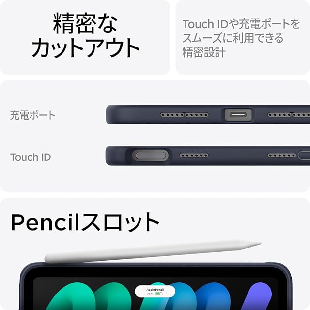 Spigen iPad mini 7(A17 Pro, 2024年, 第7世代)/ iPad mini 6(2021年, 第6世代)対応ケース Apple Pencil付着可能 耐衝撃 スリム タブレットカバー ‐ ナノポップ ACS09231(ブルーベリー・ネイビー) | TREND DESIGN 家電専門店