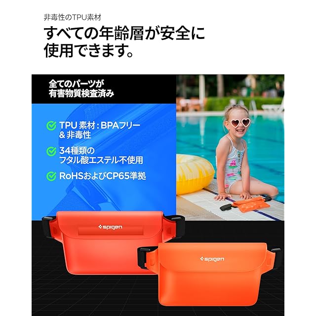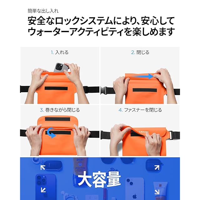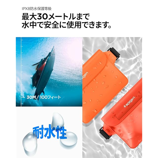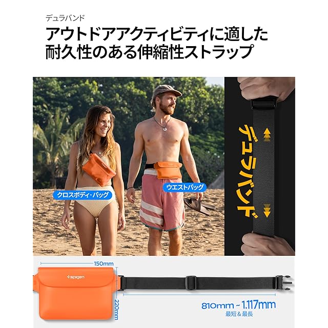 商品名:Spigen 完全防水 ウエストポーチ 2枚セット 小物 IPX8認証 海 プール 川 旅行 アウトドア スマホ収納可能 三重チャック ベルクロ PVC 大容量 防水バッグ A620 AMP06021 (サンセット・オレンジ)
